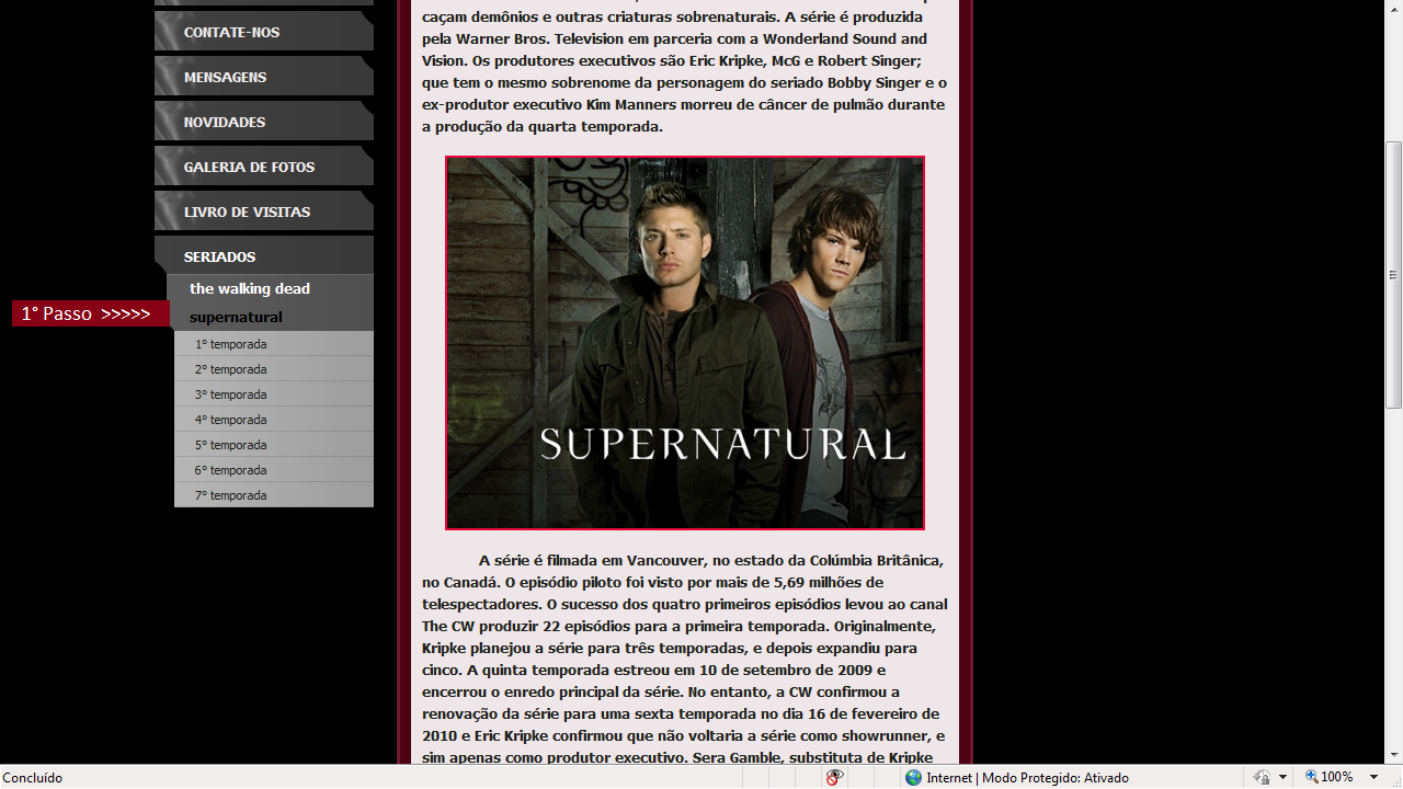 1° Passo: Seriados > Supernatural, assim como na figura abaixo:
